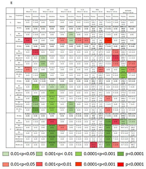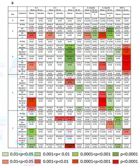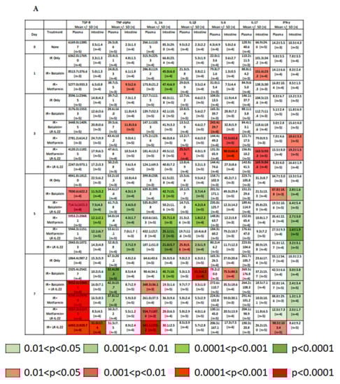 2.2. LR-IL-22 Produces Variable Alterations in Intestinal and Plasma Inflammatory Cytokines