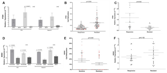 3.4. Aberrant DNA Methylation Associated with PTEN and MDM2 Dysregulation in HMA-Resistant Cell Lines