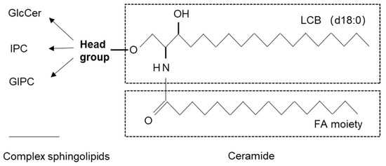 - Luttgeharm, K.D.; Kimberlin, A.N.; Cahoon, E.B. Plant sphingolipid metabolism and function. Sub-Cell. Biochem. 2016, 86, 249–286. [Google Scholar] [CrossRef]