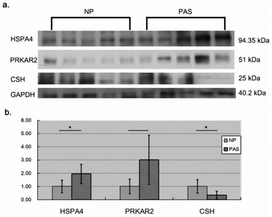 2.2. Protein Abundance Variations between PAS and NP Placenta Tissues