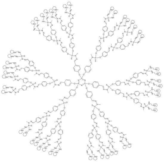 Chemical structure of cationic phosphorus dendrimer of the third generation (AE2G3).