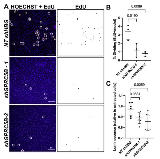 2.7. GPRC5B Deficiency Reduces Human LEC Proliferation and Viability In Vitro