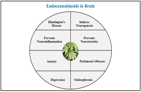 The role of cannabinoid molecules has been determined explicitly in several neurodegenerative disorders. These molecules act by modulating the acute processes involved in functioning of the brain by enhancing neurogenesis, and hence impose a potent beneficial role in management of neurological disorders. The endocannabinoid system has been studied to decrease the instances of neuroinflammation and prevent the detrimental effects that led to new row degradation by supporting pathways that encourage natural repair and protection of neurons. The endocannabinoids present neuroprotective action by encouraging neurogenesis and preventing neuroinflammation and neurotoxicity [,].