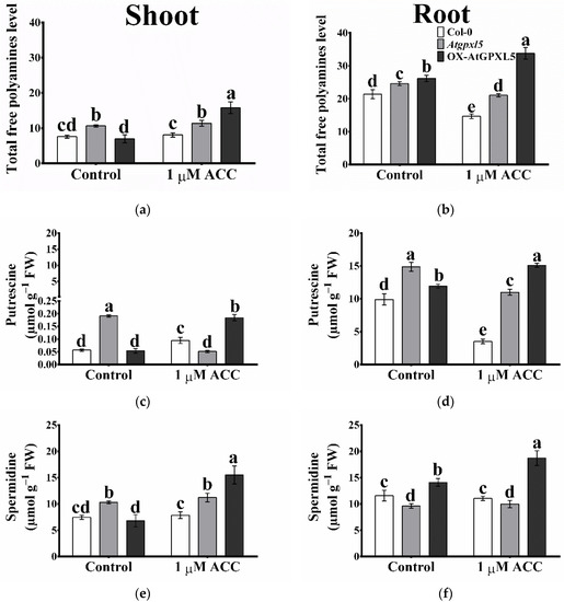 2.8. The Arabidopsis Glutathione Peroxidase-like 5 Interferes with Polyamine Metabolism
