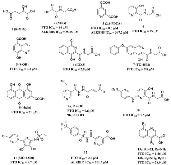 - Toh, J.D.W.; Sun, L.; Lau, L.Z.M.; Tan, J.; Low, J.J.A.; Tang, C.W.Q.; Cheong, E.J.Y.; Tan, M.J.H.; Chen, Y.; Hong, W.; et al. A strategy based on nucleotide specificity leads to a subfamily-selective and cell-active inhibitor of N(6)-methyladenosine demethylase FTO. Chem. Sci. 2015, 6, 112–122. [Google Scholar] [CrossRef]