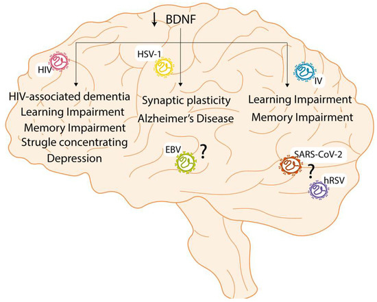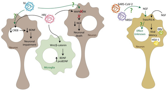 Chicago/Turabian StyleBohmwald, Karen, Catalina A. Andrade, Valentina P. Mora, José T. Muñoz, Robinson Ramírez, María F. Rojas, and Alexis M. Kalergis. 2022. "Neurotrophin Signaling Impairment by Viral Infections in the Central Nervous System" International Journal of Molecular Sciences 23, no. 10: 5817. https://doi.org/10.3390/ijms23105817