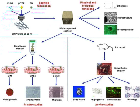 - Lin, S.; Cui, L.; Chen, G.; Huang, J.; Yang, Y.; Zou, K.; Lai, Y.; Wang, X.; Zou, L.; Wu, T.; et al. PLGA/beta-TCP composite scaffold incorporating salvianolic acid B promotes bone fusion by angiogenesis and osteogenesis in a rat spinal fusion model. Biomaterials 2019, 196, 109–121. [Google Scholar] [CrossRef]