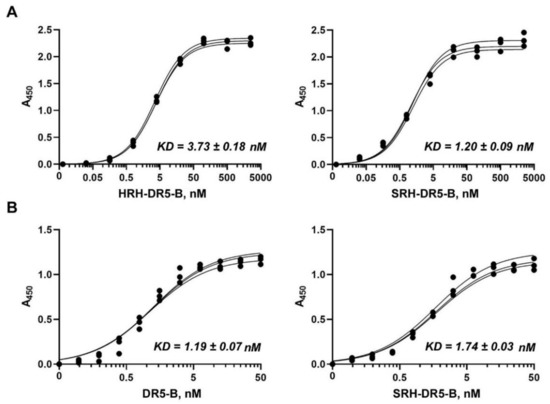 2.3. SRH–DR5-B Showed High Affinity for DR5 and VEGFR2 Receptors