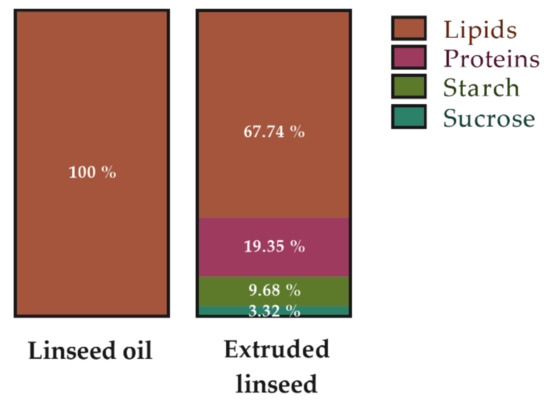Macronutrient composition (%energy/100 g) of linseed oil (Vigean®, Clion, France) and extruded linseed (Tradi-Mega; Tradilin, Patent n°FR1760984) used as supplements.