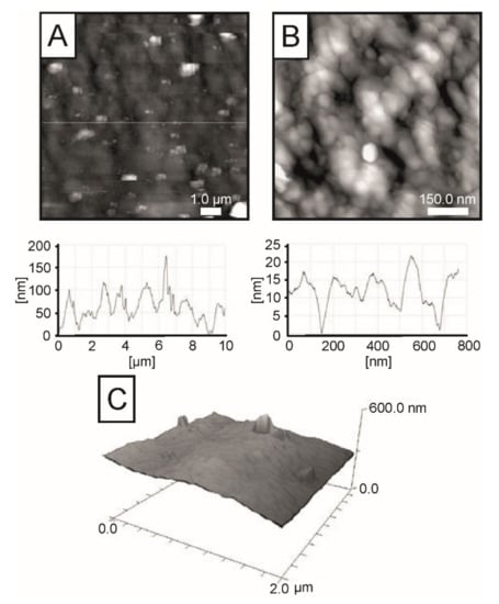 Atomic force microscopy (Dimension Icon AFM, Bruker, Billerica, MA, USA) in tapping mode using standard AFM probes was applied to visualize the surface topography of the samples at a high resolution. The microscopic measurements were repeated for diverse surface areas of the samples to gather a set of information and perform statistical analysis. The shown images are representative of the studied samples.