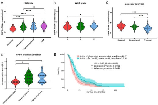 2.1. Correlation between SHPK Expression and Clinical Characteristics of Glioma Patients