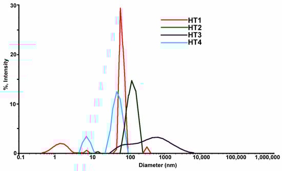 Superposed DLS images for samples coded HT obtained by the solvothermal method.
