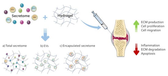 3.2. Secretome-Functionalized Hydrogels for Cartilage Repair