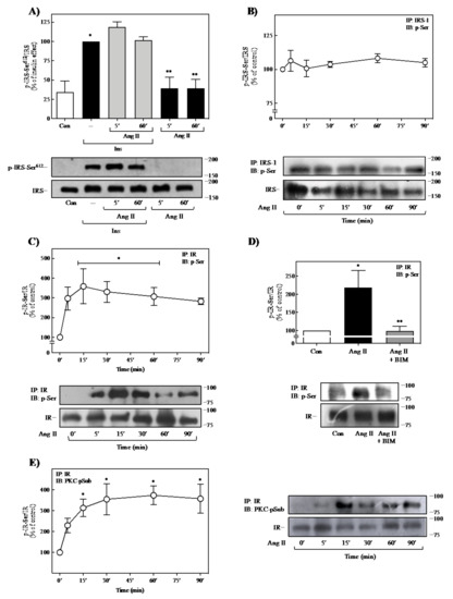 2.3. Effect of Ang II on IR- and IRS-1-Ser-Phosphorylation