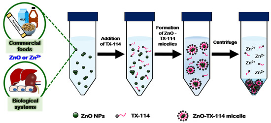 - Mohd, A.N.A.; Rahim, N.Y.; Raoov, M.; Asman, S. Optimisation and evaluation of Zinc in food samples by cloud point extraction and spectrophotometric detection. Sci. Res. J. 2019, 16, 41–59. [Google Scholar] [CrossRef]