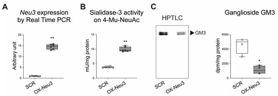 2.3. Effects of Sialidase Neu3 Overexpression in H9c2 Cardiomyoblasts
