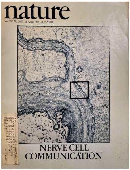But, Viancour’s findings prompted us to reconsider our earlier interpretation of the pores and immediately decided to publish the data in Nature []. Incidentally, our Nature’s publication, accompanied by our picture on the front page (Figure 7), caused a big uproar. The principal investigator of gap junctions in the nervous system wrote a rebuttal to Nature suggesting the artifactual nature of the pores. However, Nature accepted our answer to his comments and refused to publish the rebuttal in “Matters Arising.”