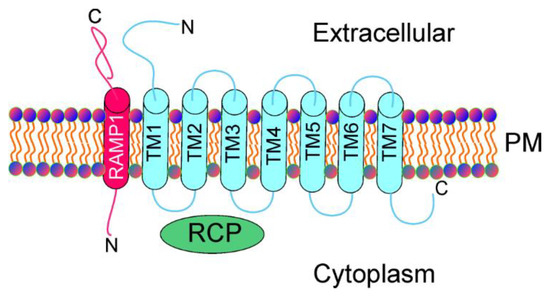 - Walker, C.S.; Conner, A.C.; Poyner, D.R.; Hay, D.L. Regulation of signal transduction by calcitonin gene-related peptide receptors. Trends Pharmacol. Sci. 2010, 31, 476–483. [Google Scholar] [CrossRef] [PubMed]