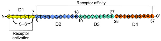 - Breeze, A.L.; Harvey, T.S.; Bazzo, R.; Campbell, I.D. Solution structure of human calcitonin gene-related peptide by 1H NMR and distance geometry with restrained molecular dynamics. Biochemistry 1991, 30, 575–582. [Google Scholar] [CrossRef] [PubMed]