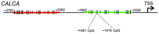 - Broad, P.M.; Symes, A.J.; Thakker, R.V.; Craig, R.K. Structure and methylation of the human calcitonin/alpha-CGRP gene. Nucleic Acids Res. 1989, 17, 6999–7011. [Google Scholar] [CrossRef]