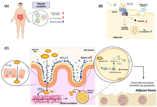 - Hersoug, L.G.; Moller, P.; Loft, S. Role of microbiota-derived lipopolysaccharide in adipose tissue inflammation, adipocyte size and pyroptosis during obesity. Nutr. Res. Rev. 2018, 31, 153–163. [Google Scholar] [CrossRef]