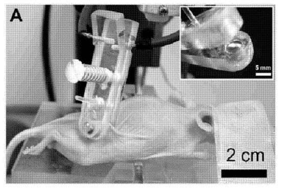 Figure 6. nsPEF device applied on SKH-1 hairless mouse to abolish melanoma cancer. Figure extracted from the patent titled “Nanosecond pulsed electric fields cause melanomas to self-destruct”. ID US20180200510A1.