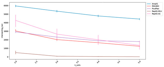 In many cases where single cells are compared against each other via their WGA products, reproducible bias is preferred over a random bias. If only loci that are measured across the entire cell population were to be considered, random dropout would quickly diminish the available dataset. To evaluate this loci consistency quality of the WGA kits, we inspected the number of intersecting loci among cells in pairs, triplets, quartets, and quintets (Figure 4).
