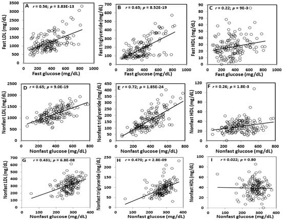 2.4. Correlations between Plasma Glucose and Lipid Levels