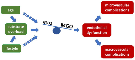 Thus, at every level—cellular, and living organism, including humans—MGO is identified as a toxic compound, shifting the balance to endothelial dysfunction and early atherosclerotic effects if the levels exceed certain limits (Figure 2).