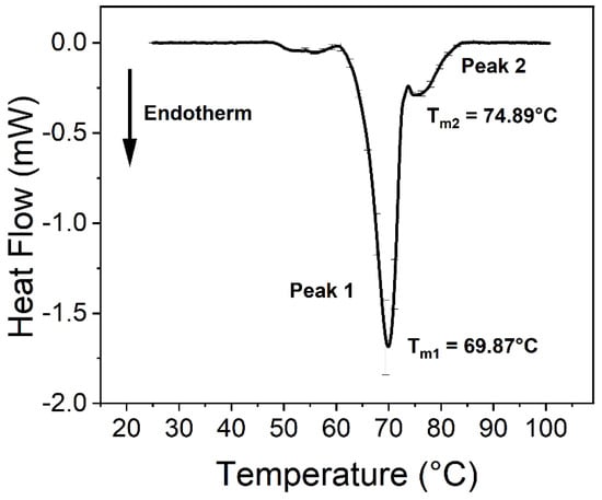 The thermal analysis of untreated anticoagulated whole blood samples after 2 h of incubation. The plot is an average of the same measurements repeated at different incubation temperatures (24 °C, 37 °C, and 40 °C). The DSC data represent the mean ± SD of three independent measurements (n = 3).