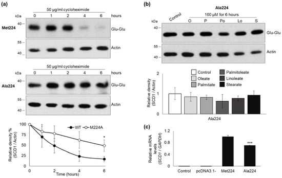 2.4. Effect of Met→Ala Replacement at Position 224 on the Expression and Stability of SCD1