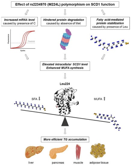 Chicago/Turabian StyleTibori, Kinga, Gabriella Orosz, Veronika Zámbó, Péter Szelényi, Farkas Sarnyai, Viola Tamási, Zsolt Rónai, Judit Mátyási, Blanka Tóth, Miklós Csala, and et al. 2022. "Molecular Mechanisms Underlying the Elevated Expression of a Potentially Type 2 Diabetes Mellitus Associated SCD1 Variant" International Journal of Molecular Sciences 23, no. 11: 6221. https://doi.org/10.3390/ijms23116221