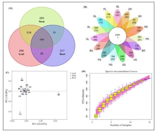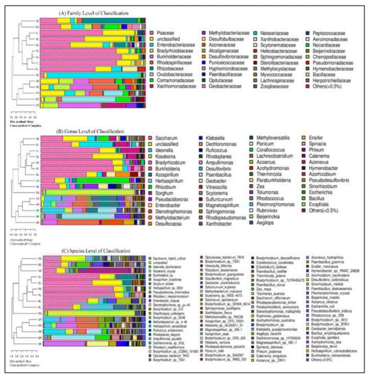 - Dong, M.; Yang, Z.; Cheng, G.; Peng, L.; Xu, Q.; Xu, J. Diversity of the bacterial microbiome in the roots of four saccharum species: S. spontaneum, S. robustum, S. barberi and S. officinarum. Front. Microbiol. 2018, 9, 267. [Google Scholar] [CrossRef]