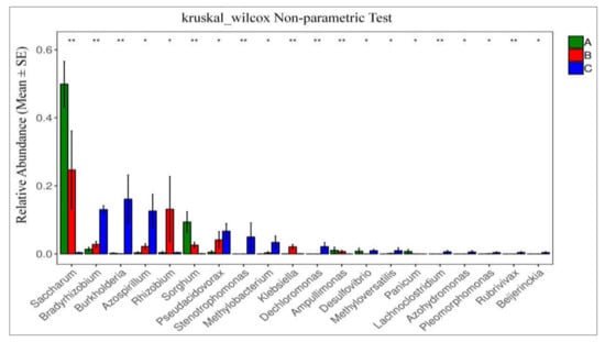 2.5. Metagenome Analysis Revealed Insight into the Major Microbial Taxonomic Classification from Sugarcane