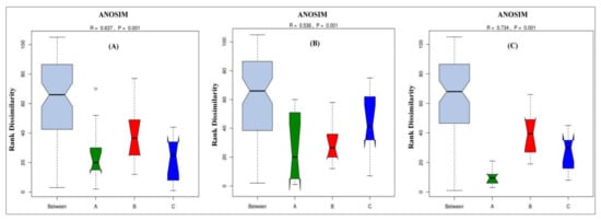 2.10. Analysis of Similarity (ANOSIM) Test