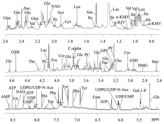 - Beckonert, O.; Keun, H.C.; Ebbels, T.M.; Bundy, J.; Holmes, E.; Lindon, J.C.; Nicholson, J.K. Metabolic profiling, metabolomic and metabonomic procedures for NMR spectroscopy of urine, plasma, serum and tissue extracts. Nat. Protoc. 2007, 2, 2692. [Google Scholar] [CrossRef] [PubMed]