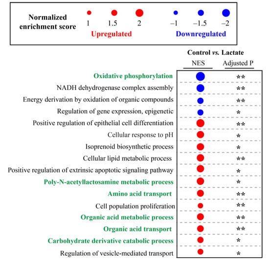 2.4. Lactate Modulated Transcriptome Signatures in Human Colon Epithelial Cells