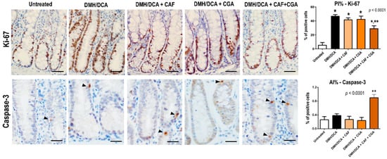 2.3. Proliferation and Apoptosis Indexes in Colonic Crypts