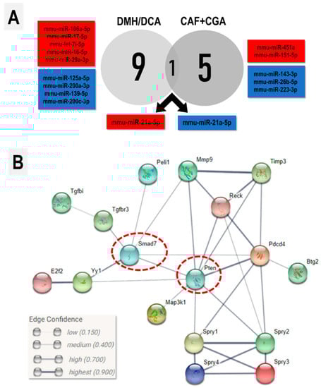 2.6. Analysis miR-21a-5p Target Genes and Network/Functional Correlation