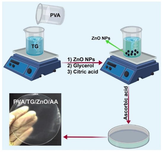 A schematic diagram showing the fabrication of an TG-based nanocomposite film. Adapted with permission from [50], 2020, Elsevier B.V.