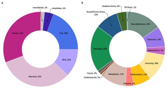 A review of the literature by (A) species and (B) physiological processes/pathways.