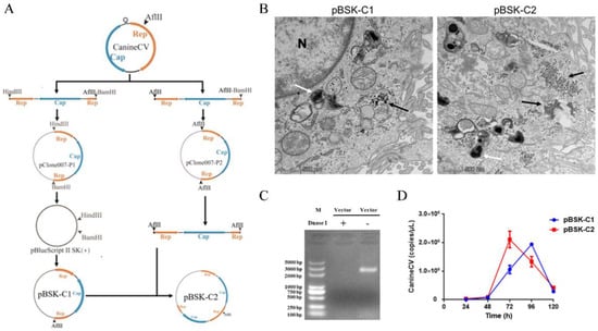 - Cheung, A.K. Rolling-circle replication of an animal circovirus genome in a theta-replicating bacterial plasmid in Escherichia coli. J. Virol. 2006, 80, 8686–8694. [Google Scholar] [CrossRef] [Green Version]