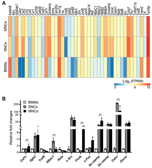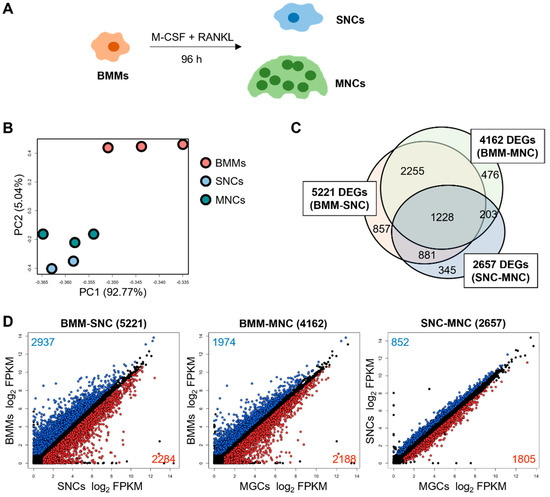 2.1. SNCs and MNCs Have Distinct Transcriptomic Profiles during Osteoclastogenesis