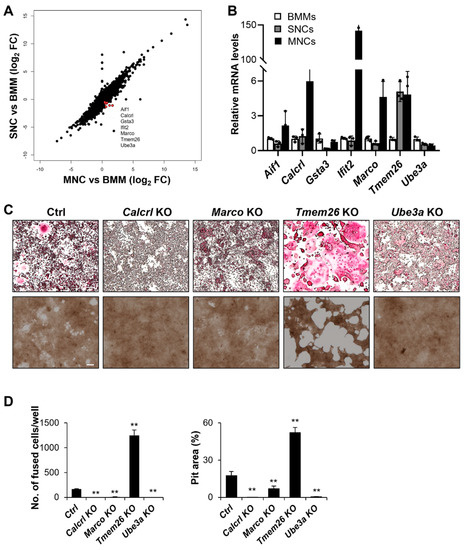 2.4. Calcrl, Marco, Tmem26, and Ube3a Control SNCs and MNCs