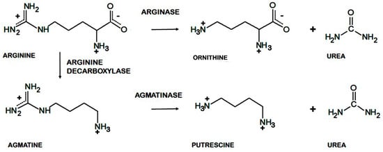 - Benítez, J.; García; Romero, N.; González, A.; Martínez-Oyanedel, J.; Figueroa, M.; Salas, M.; López, V.; García-Robles, M.; Dodd, P.R.; et al. Elena Uribe Metabolic strategies for the degradation of the neuromodulator agmatine in mammals. Metabolism 2018, 81, 35–44. [Google Scholar] [CrossRef]
