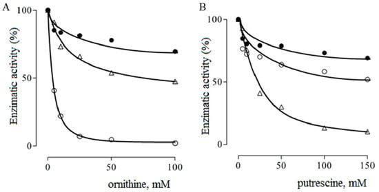 - Maturana, P.; Orellana, M.S.; Herrera, S.M.; Martínez, I.; Figueroa, M.; Martínez-Oyanedel, J.; Castro-Fernandez, V.; Uribe, E. Crystal Structure of Escherichia coli Agmatinase: Catalytic Mechanism and Residues Relevant for Substrate Specificity. Int. J. Mol. Sci. 2021, 22, 4769. [Google Scholar] [CrossRef] [PubMed]