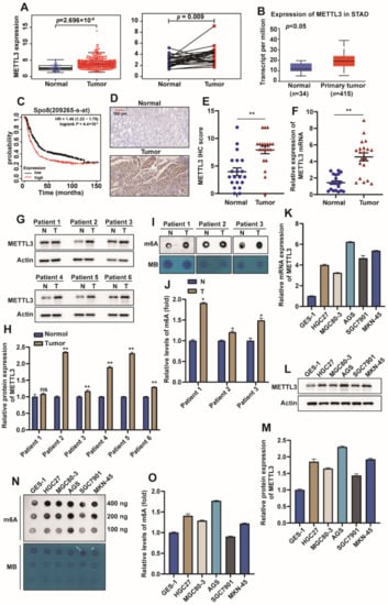 2.1. METTL3 Is Highly Expressed in GC