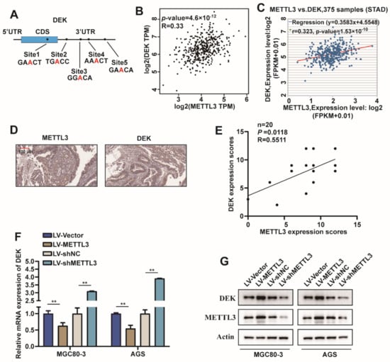 2.3. METTL3 Regulated DEK Expression in GC
