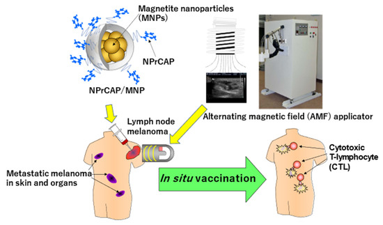 - Kobayashi, T.; Kakimi, K.; Nakayama, E.; Jimbow, K. Antitumor immunity by magnetic nanoparticle-mediated hyperthermia. Nanomedicine 2014, 9, 1715–1726. [Google Scholar] [CrossRef]