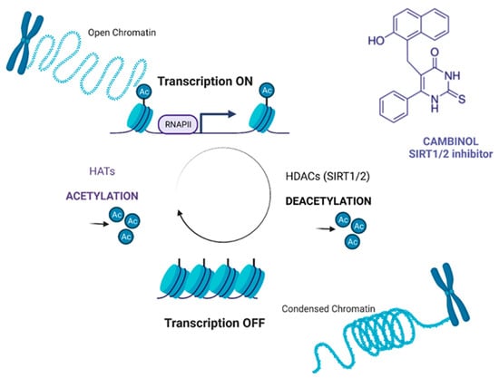 - Heltweg, B.; Gatbonton, T.; Schuler, A.D.; Posakony, J.; Li, H.; Goehle, S.; Kollipara, R.; DePinho, R.A.; Gu, Y.; Simon, J.A.; et al. Antitumor Activity of a Small-Molecule Inhibitor of Human Silent Information Regulator 2 Enzymes. Cancer Res. 2006, 66, 4368–4377. [Google Scholar] [CrossRef] [Green Version]